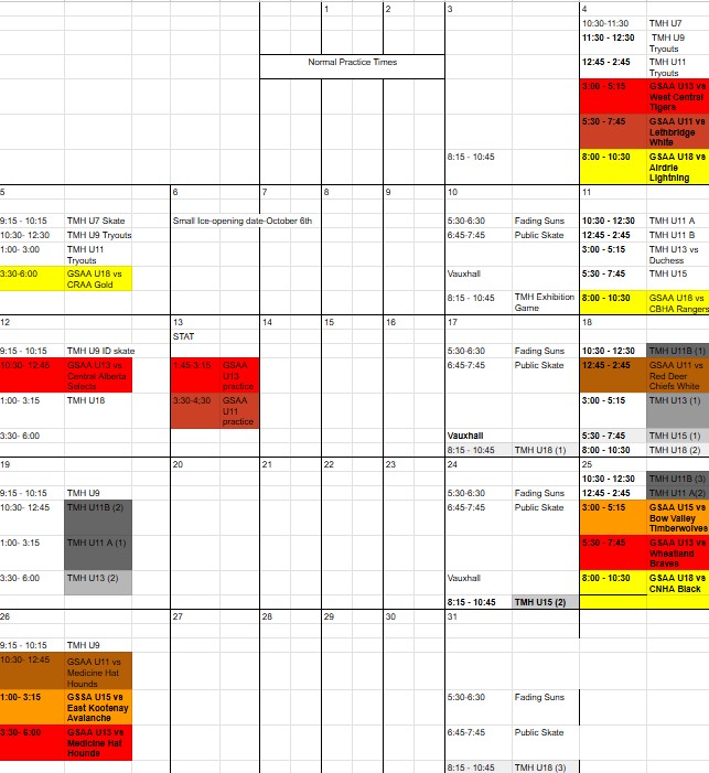 ICE SCHEDULES
